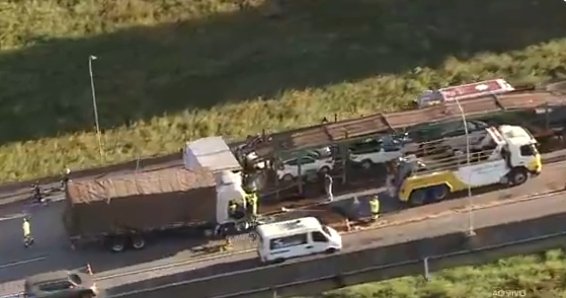 Um sinistro (acidente) no km 67 do Rodoanel Mário Covas (SP-021), em São Bernardo do Campo (SP), na manhã desta sexta-feira (30), envolvendo uma carreta-cegonha, dois caminhões e uma van deixou ao menos dez feridos, sendo uma em estado grave.