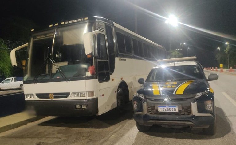 Durante fiscalização, um ônibus Mercedes-Benz O 400 RSE, conduzido por um homem, de 33 anos, natural de Nova Serrana (MG), foi abordado pois apresentava características adulteradas. Na vistoria, foi observado que a maior parte dos assentos estava removida para acomodar a carga, além de volumes transportados também no bagageiro.