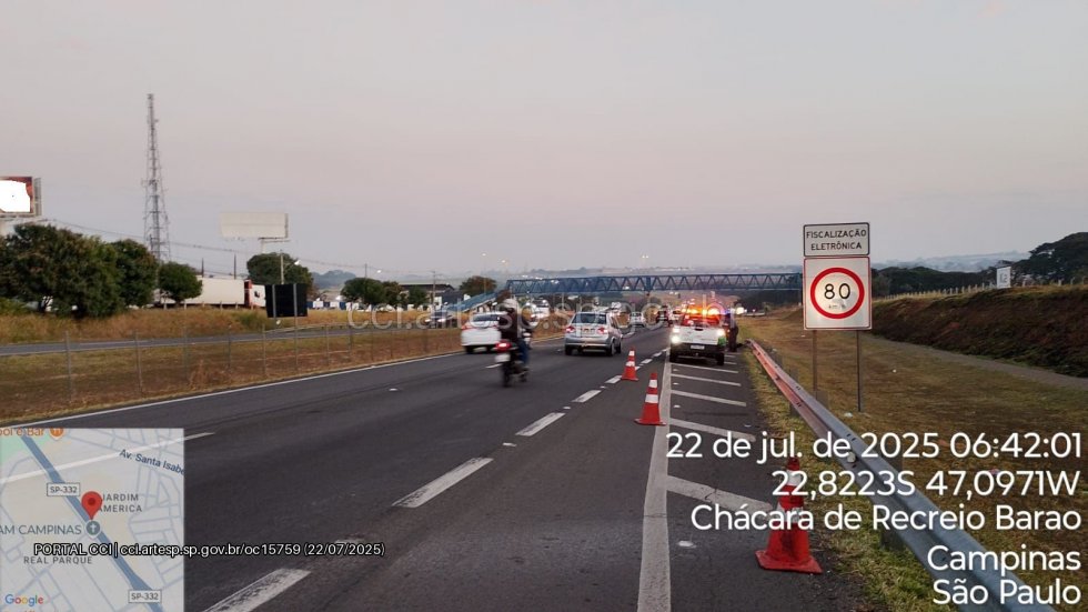 Pedestre é atropelado e morto no acostamento da SP-332, em Campinas; veículo evadiu-se do local