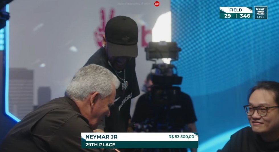 O craque chegou à mesa após mais de uma hora do início do jogo, marcado para as 17h, e pagou R$ 25 mil para entrar na competição, que dará ao vencedor um prêmio de R$ 1,5 milhão.
